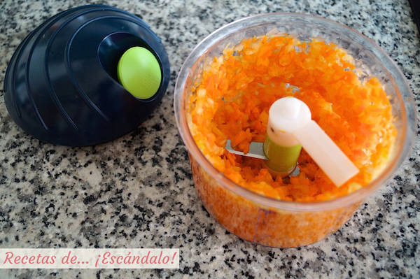 Ponemos en la Chop Chop una cebolla y una zanahoria peladas y en trozos