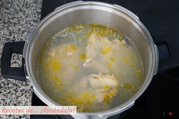 - La carcasa de un pollo o huesos de pollo. A mi me gusta que sean de pollo campero pero esto ya va en gustos.