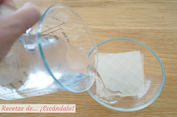 - Ahora vamos a preparar el relleno. En un bol con agua fría pon la gelatina para que se hidrate.